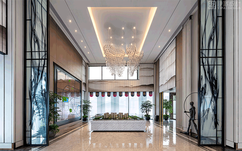 售樓處設計是地產營銷的第一陣地,承載著樓盤形象、客戶體驗、銷售過程等多項功能。售樓處不僅是激發(fā)消費者購房欲的第一現(xiàn)場,還代表了發(fā)展商的專業(yè)水平與品牌形象。售樓處設計的原則是更為有效地引導客戶順暢的參觀售樓處并吸收項目的賣點,樹立樓盤的第一印象,最終促使交易完成,因此在售樓處設計中,統(tǒng)籌兼顧功能布局、空間營造、色彩搭配、照明設計等方面的同時,應特別注意將地產商的信息完整而全面地表現(xiàn)出來。